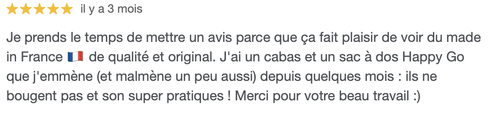 Toujours en quête de nouvelles collaborations, nous aimons dénicher des fournisseurs et ateliers qui partagent notre vision. Chez Happy Go, chaque sac raconte une belle histoire de partage et d’engagement.